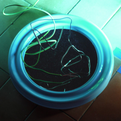 A (small) sculpture - part of the Transformações & Imperfeições project - built with found objects - a long cable & a mirror.
