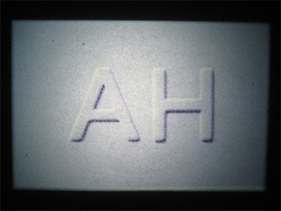 A photograph taken of a part of an electric device box at the North side entrance of the Rotherhite tunnel in London. The story of finding a use of this one image for a slide projection is also the story of finding the CGP Gallery in Southwark Park, where the piece was made for and exhibited end of 2012. It can be seen as a poetic palindrome - a projection showing two different words at the same time. |