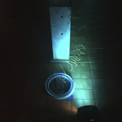 A (small) sculpture - part of the Transformações & Imperfeições project - built with found objects - a long cable & a mirror.